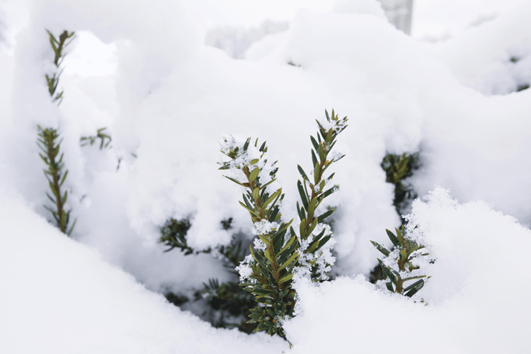 Сніг потрібно знімати обережно, не трусячи рослину. Використовуйте руку в рукавичці або м’яку щітку та рухайтеся зверху вниз, щоб зменшити навантаження на гілки.